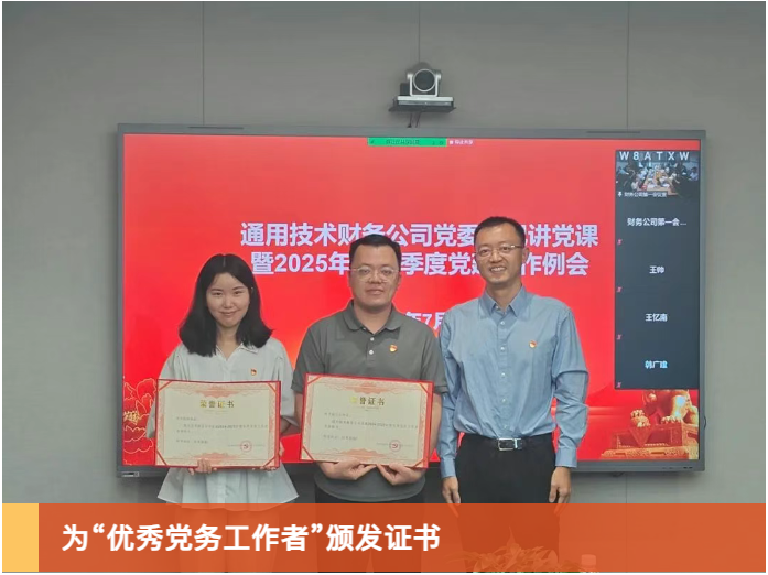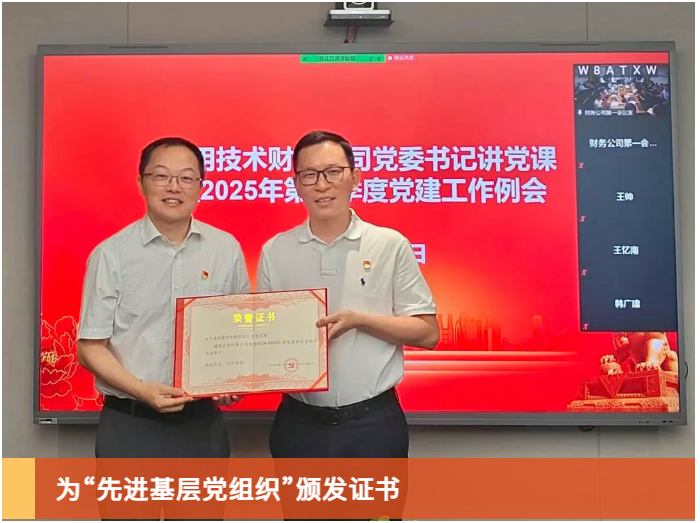 7月4日,通用技术财务公司召开2025年第二季度党建工作例会。公司领导班子成员,各党支部书记和委员、全体中层等参加会议,全体员工通过现场+视频形式参加了党委书记讲党课。会议传达学习了集团党组深入贯彻中央八项规定精神学习教育专题推进会、集团深入学习贯彻中央八项规定精神专题党课报告会暨第二季度党建工作例会精神,听取了各党(总)支部开展深入贯彻中央八项规定精神学习教育情况汇报,开展了2025年度公司党内评优表彰。党委书记、总经理岳海涛作了党课报告,并对下半年党建重点工作进行了部署。会议要求,公司党委和各党(总)支部要推动深入贯彻中央八项规定精神学习教育走深走实,确保学有质量、查有力度、改有成效。要加强“通财模式”党建体系建设,发挥好“两优一先”的示范带动作用,以更加坚定的信念、更加务实的作风、更加有力的举措,全力以赴完成好全年党建经营目标任务,为服务集团主业发展做出新的贡献。