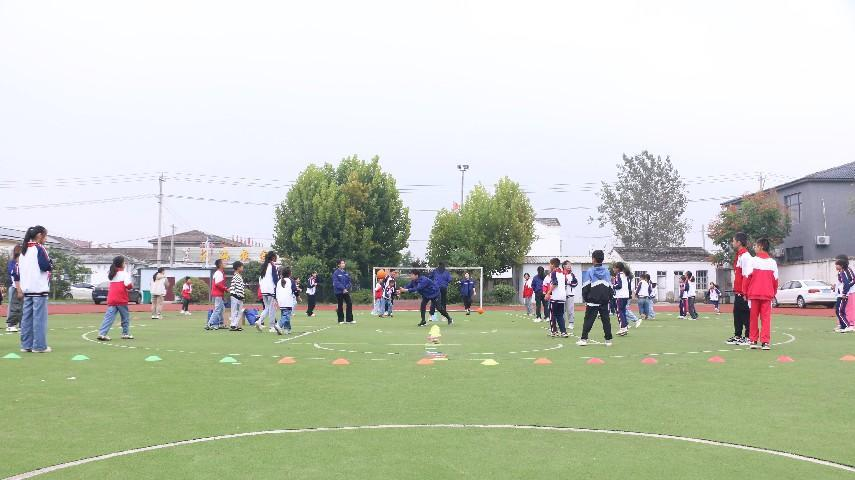 随后志愿者带领同学们在操场上开展躲避球游戏活动,在游戏中分享欢乐,增强同学们团队协作和强身