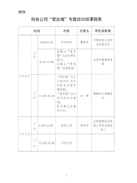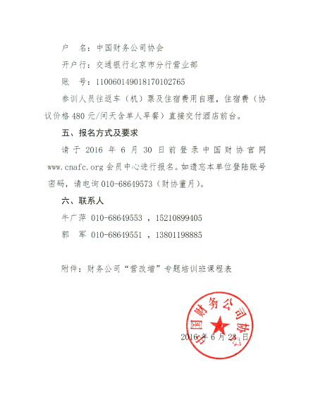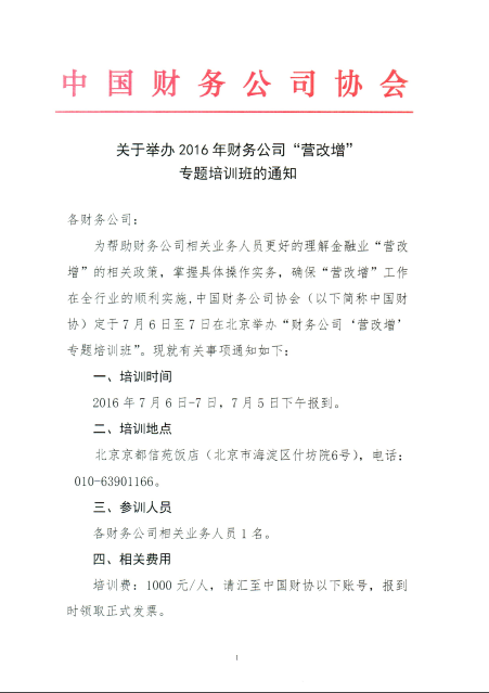 附件:关于举办2016年财务公司“营改增”专题培训班的通知