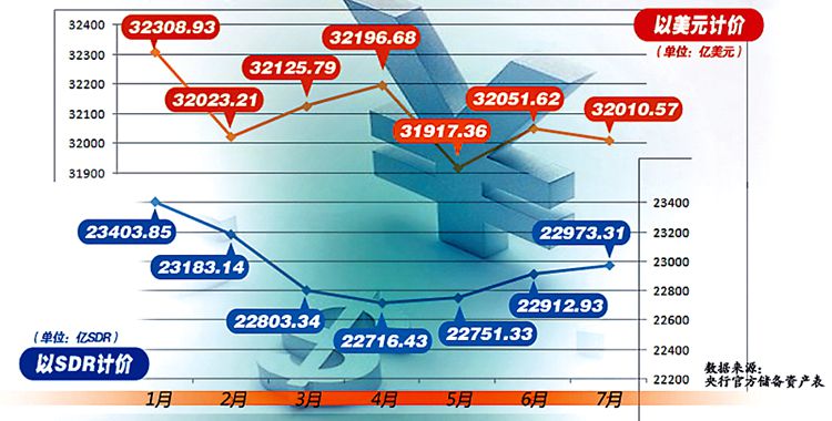 不过,按照SDR计价,7月外汇储备则是正增长。7月末,外汇储备为22973.31亿SDR,较6月末增加60.38亿SDR。
