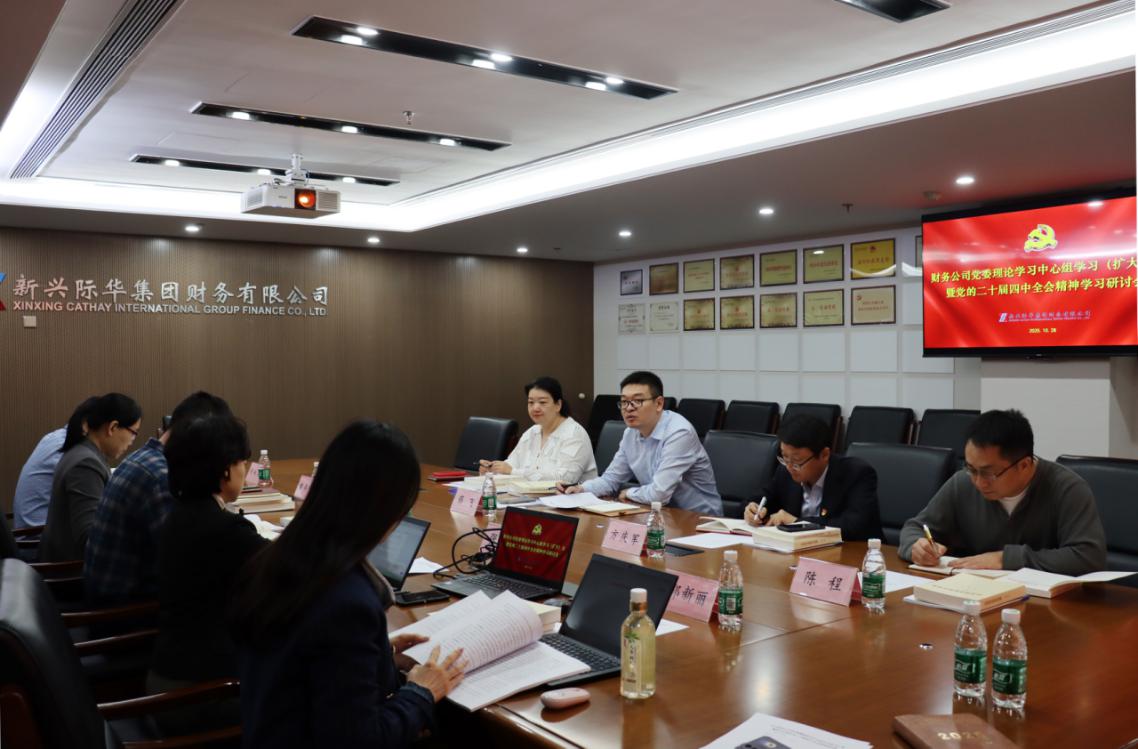 10月28日上午,新兴际华财务公司召开党委中心组扩大会,专题学习贯彻党的二十届四中全会精神,旨在深刻领会全会精神的丰富内涵与核心要义,统一思想、凝聚共识,为推动企业高质量发展注入强大动力。公司中层以上领导干部参加会议,并围绕学习贯彻党的二十届四中全会精神及集团公司三季度经济活动分析会精神进行了深入研讨。