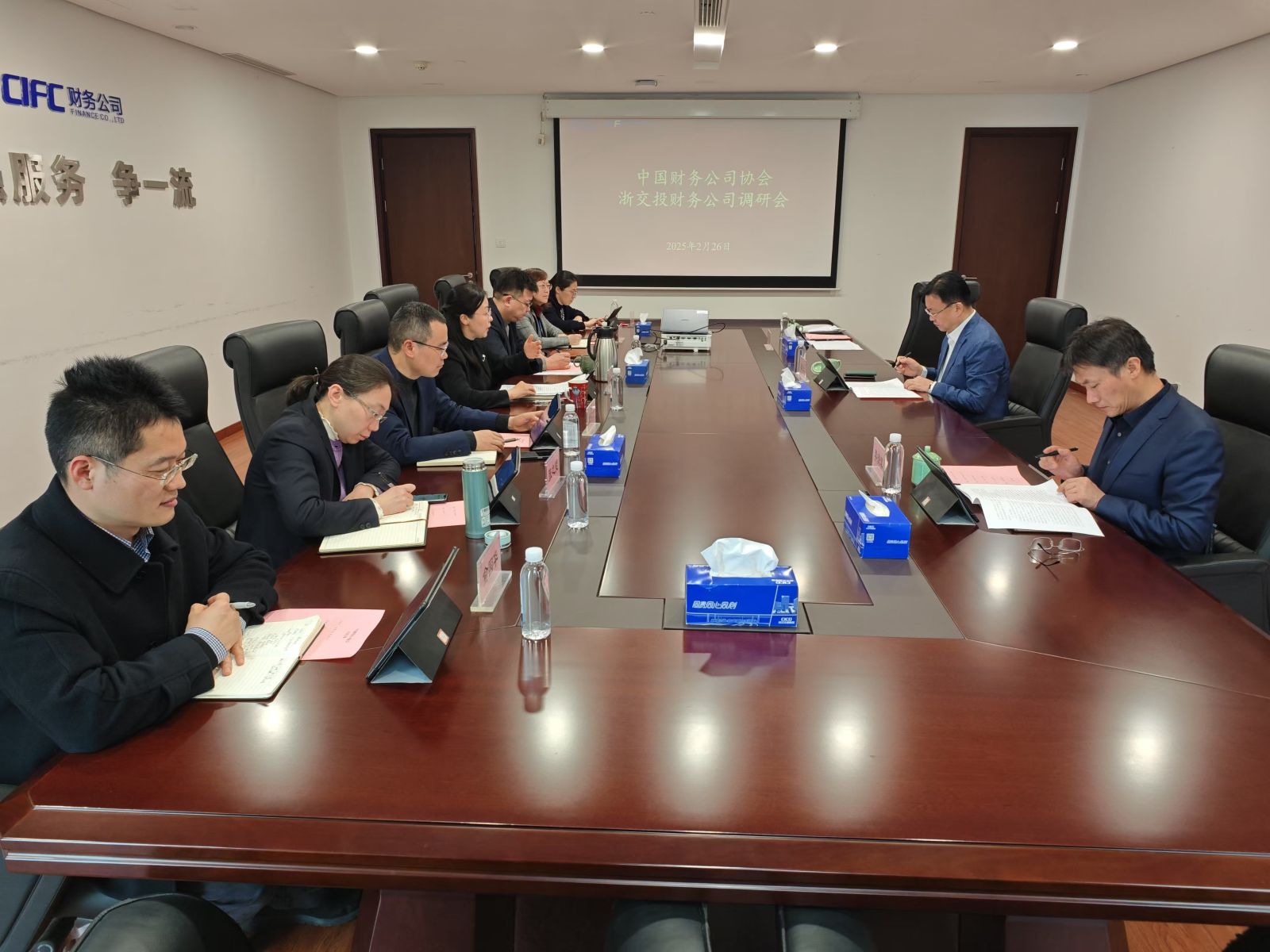 为深入调研财务公司经营管理情况,听取财务公司对协会工作的意见建议,中国财务公司协会(以下简称“中国财协”)于2025年2月26日在杭州召开浙江省财务公司座谈会,中国财协党委书记、常务副会长朱进元主持了会议,浙江金融监管局叶慧霖副局长、非银处羊茂良处长和邵生庐科长出席了本次会议。