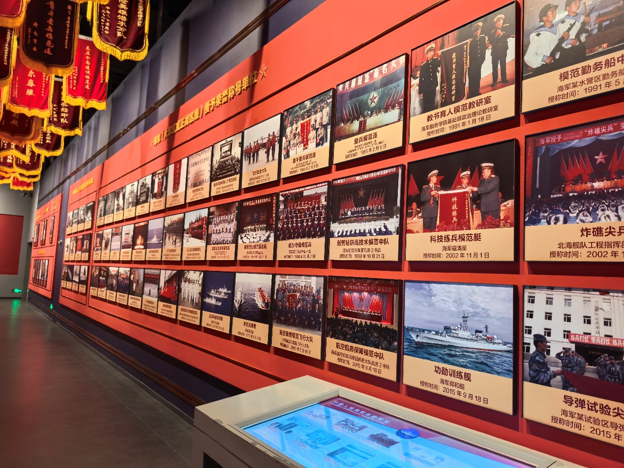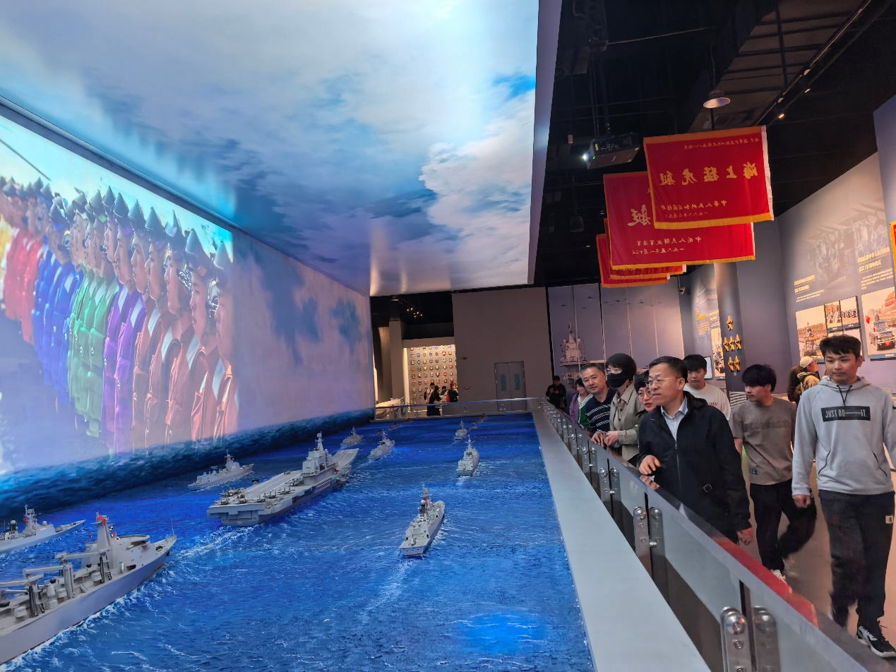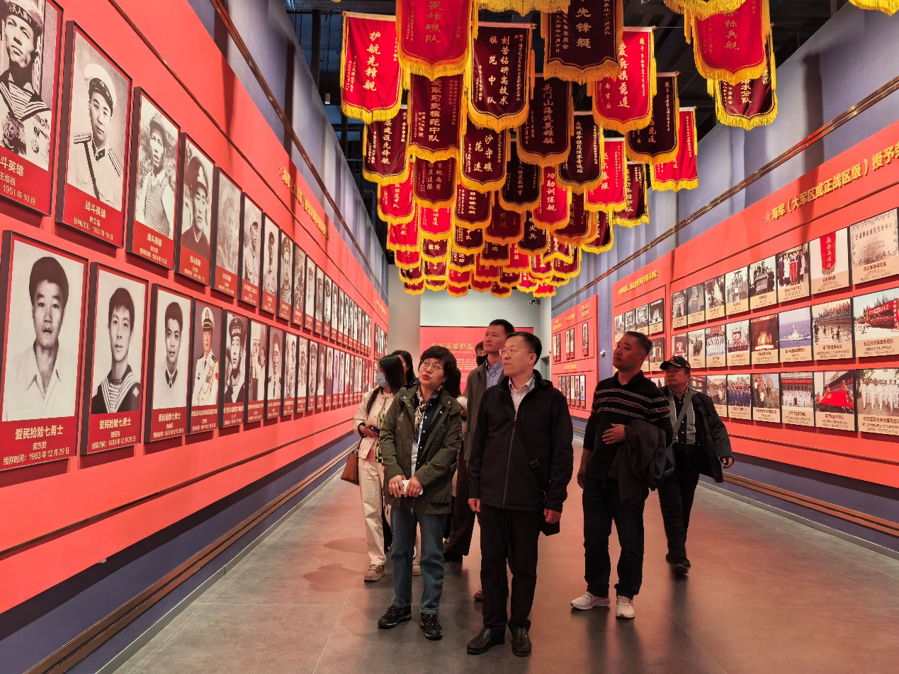 随后,大家来到海军授予荣誉称号的英模事迹展区。“海空卫士” 王伟为捍卫祖国领空,驾驶战机与美军侦察机英勇周旋,最终壮烈牺牲;“水下先锋” 张超为实现舰载机上舰的梦想,在训练中遭遇突发故障,为挽救战机壮烈殉国…… 一件件感人至深的事迹,通过图文、影像等形式生动呈现。在海军烈士纪念区域,全体人员神情庄重,缓步前行。讲解员深情讲述着烈士们在海战中浴血奋战、为守护海疆不惜牺牲生命的英勇故事,不少参观者眼眶湿润。潜艇舰队退役转业的老党员吕志海驻足在一位牺牲时年仅23岁的烈士姓名铭牌前,轻声说道:“战士的使命就是用生命诠释忠诚与担当。他们用青春和热血捍卫了国家尊严,这份精神永远值得我们铭记和传承。”