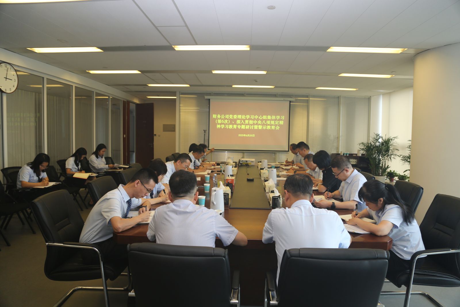 6月20日下午,财务公司党委理论学习中心组举行集体学习、专题研讨和警示教育,深入学习领会习近平总书记关于加强党的作风建设重要论述、《锲而不舍落实中央八项规定精神,以优良党风引领社风民风》、学习教育中央指导组工作座谈会会议精神、党的十八大以来深入贯彻中央八项规定精神的成效和经验交流研讨座谈会会议精神、集中整治违规吃喝相关文件,集体观看电视专题片《永远吹冲锋号》,围绕深刻领会《党的十八大以来深入贯彻中央八项规定精神的成效和经验》《八项规定改变中国》精神、深刻汲取违规吃喝典型案例教训带头抵制违规吃喝行为、深刻认识形式主义官僚主义严重危害牢固树立正确政绩观等专题研讨。党委副书记、总经理董春主持学习,班子成员作交流发言。