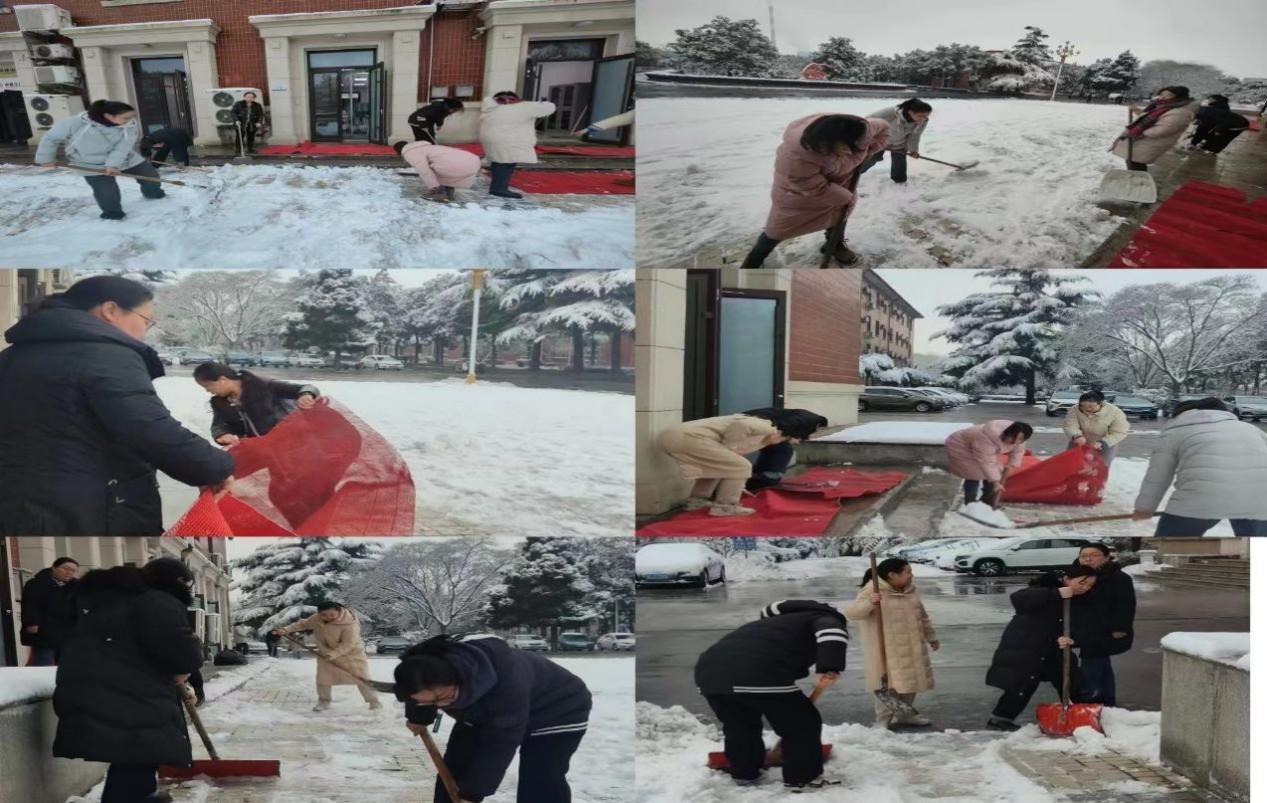 早上7点,在分公司总经理郑珉的带领下,河南分公司党员干部、志愿者纷纷拿起除雪工具走到办公室外,投入到