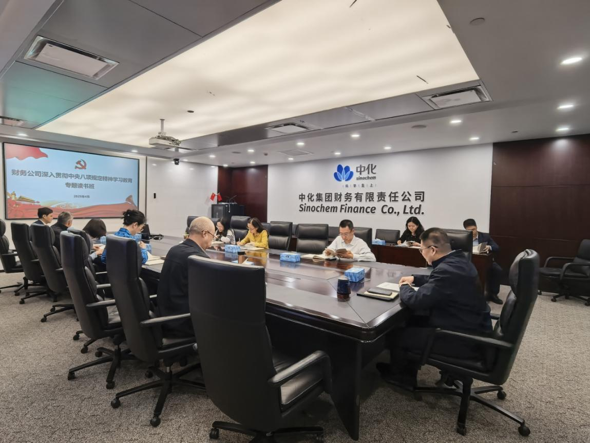 4月15日至4月16日,中化财务公司党委举办深入贯彻中央八项规定精神学习教育专题读书班,采用专题学习、个人自学、专题研讨等方式,深入学习习近平总书记关于开展深入贯彻中央八项规定精神学习教育的重要讲话和重要指示精神,原原本本学习《习近平关于加强党的作风建设论述摘编》《习近平总书记关于党的建设的重要思想概论》。中化财务公司党委书记、总经理夏宇主持读书班并讲话,公司领导班子成员结合个人学习和工作实际分别作交流发言。