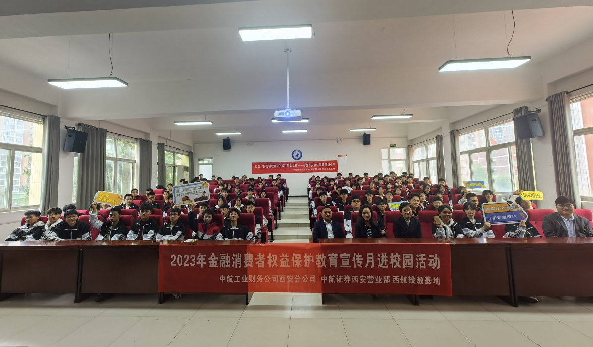 委和中航证券西安营业部,于2023年10月12日走进西安启航职业高级中学,共同开展“金融消费者权益保护”