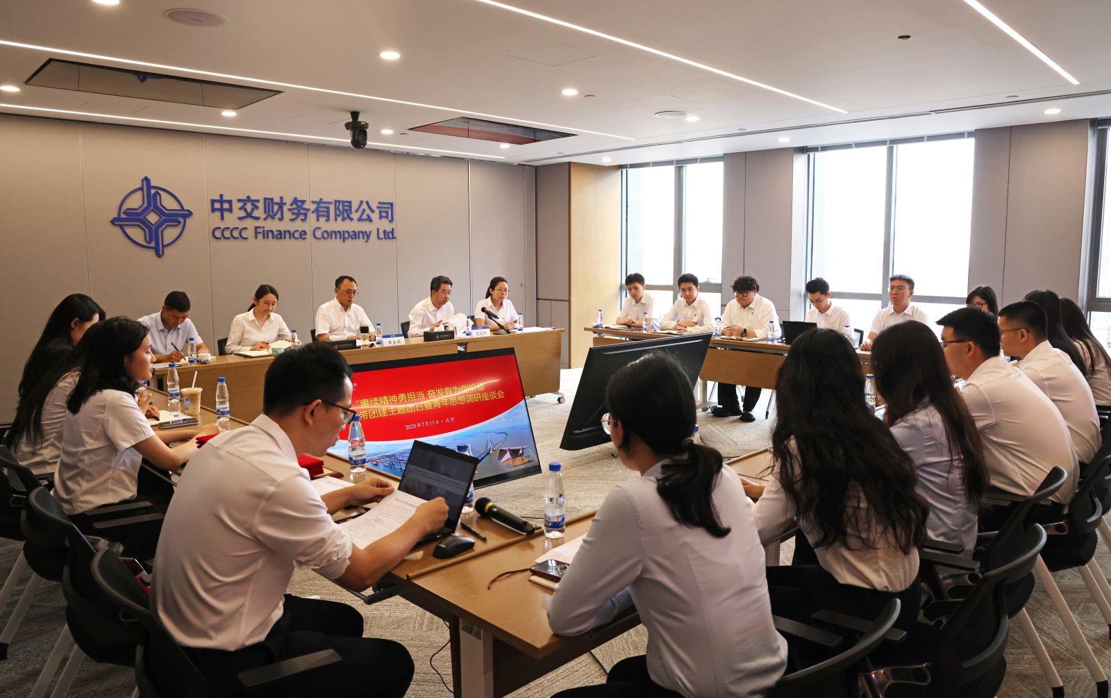 7月11日,中交财务开展“赓续精神勇担当 奋发有为创价值”党建带团建主题团日活动暨青年思想调研座谈会。公司党委书记、副董事长李金明,党委副书记、纪委书记、工会主席吕昭军出席本次会议。