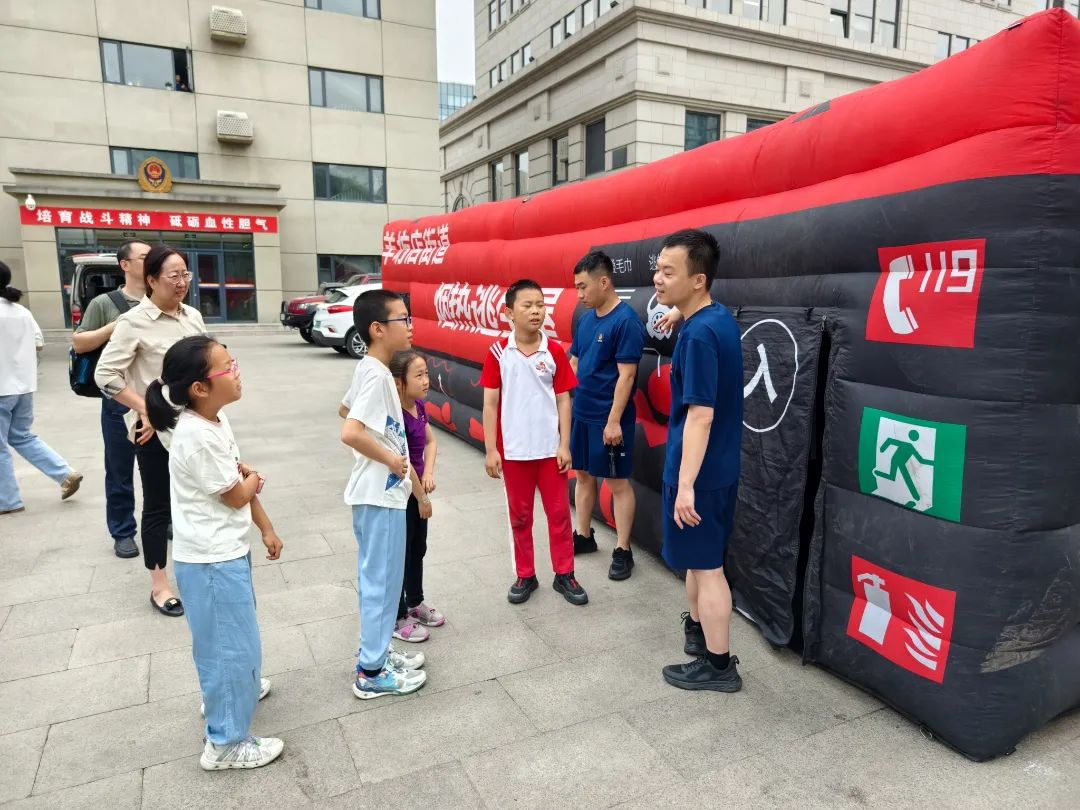 为了增强小朋友和家长们的火灾逃生能力,活动现场设置了逃生演练环节。模拟火灾现场的烟雾和黑暗环境,让大家仿佛置身于真实的火灾场景中,小朋友和家长们在指示标志和消防员的引导下,弯腰低姿、捂住口鼻,有序地从逃生帐篷中撤离。通过这次演练,大家掌握了在紧急情况下正确的逃生方法,提高了应对火灾的能力。