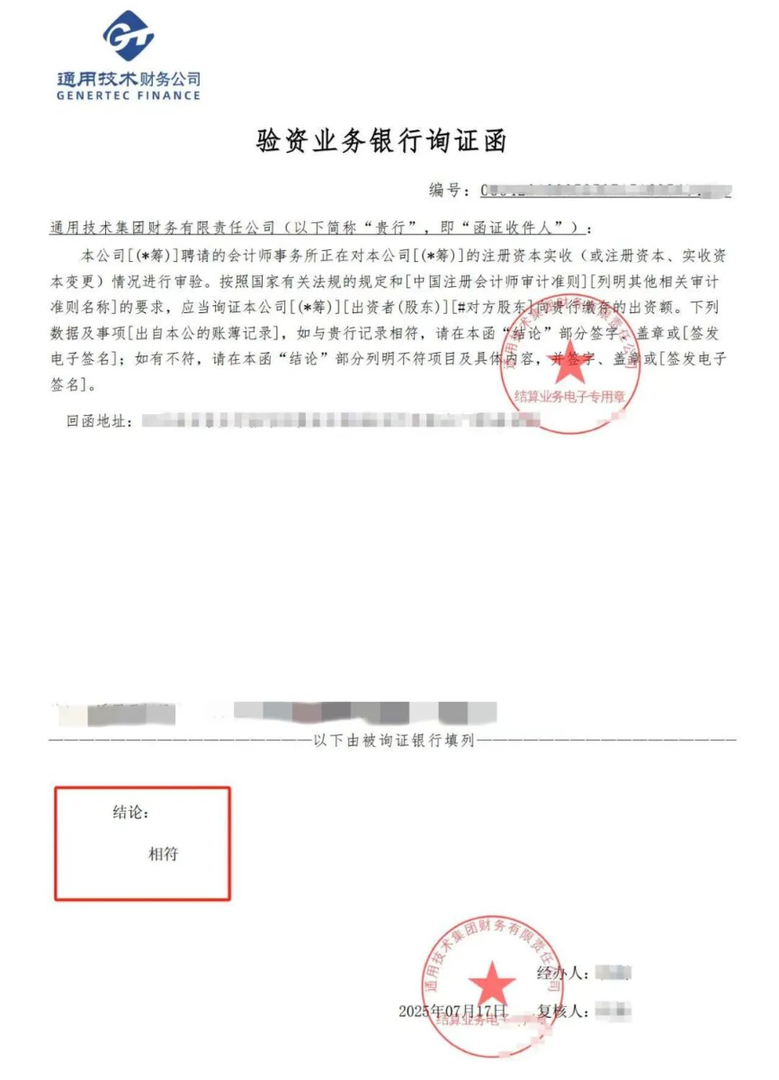 7月17日,通用技术财务公司正式向某事务所出具首笔线上验资业务的回函。此业务的成功办理,实现了公司在验资领域零的突破,标志着公司服务能力的又一次升级。同时,也为进一步吸引成员单位使用公司验资服务提供了良好示范。依托银行函证区块链服务平台,此次回函全程通过数字化手段高效完成,实现了“数据多跑路、客户零跑腿”的目标。下一步,财务公司将进一步拓宽业务领域,满足集团及成员单位的服务需求;同时,继续以公司的综合金融平台能力为支撑,助力集团主业高质量发展。