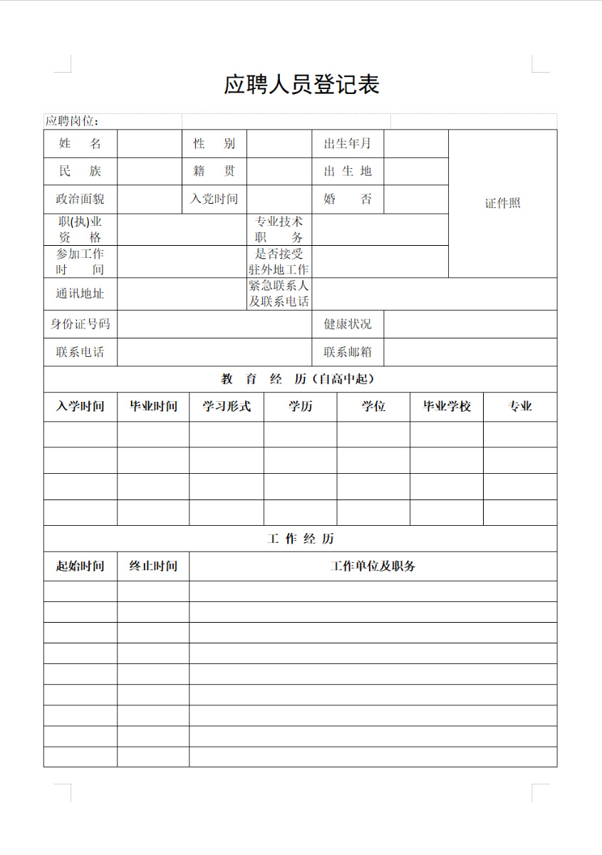 (2)下载《应聘人员登记表》,填写完成签字后扫描成一个PDF文件,按照“姓名+应聘人员登记表”的方式命名,上传至“个人自制简历”;