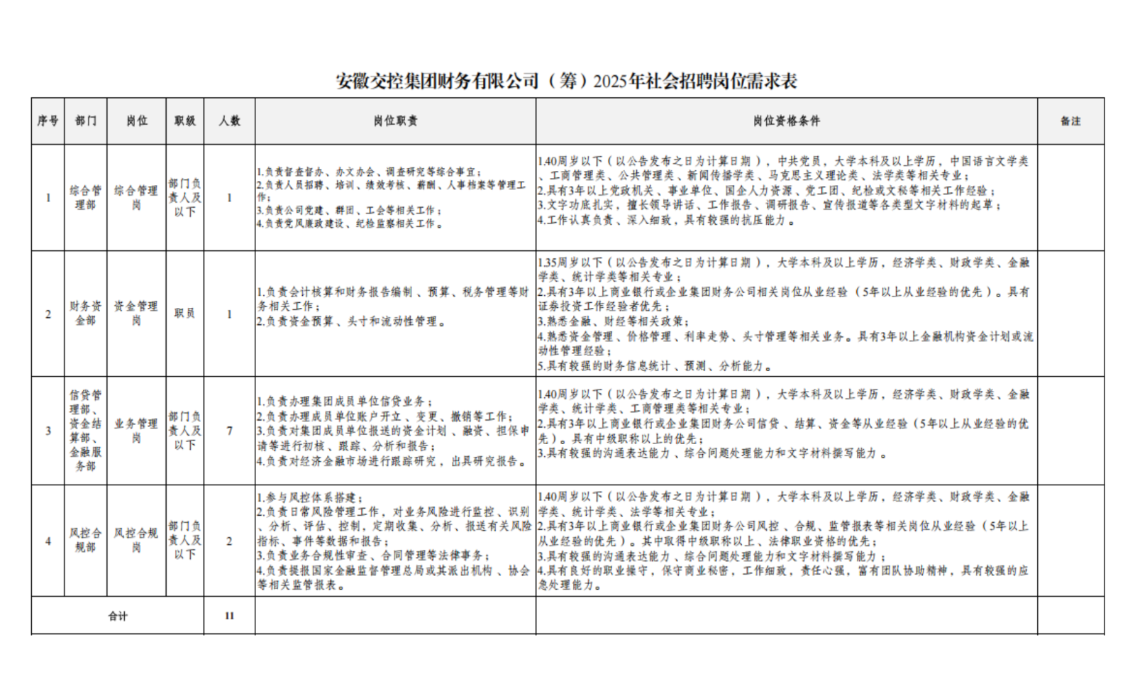 为满足财务公司发展需要,现就相关岗位面向社会公开招聘,具体事项公告如下: