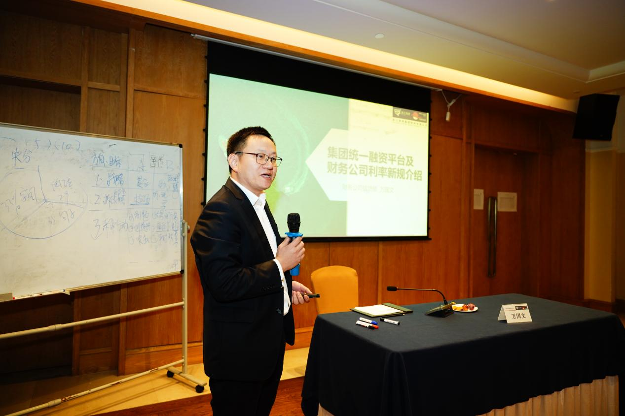 图为财务公司信贷部经理万国文作统一融资中心推介
