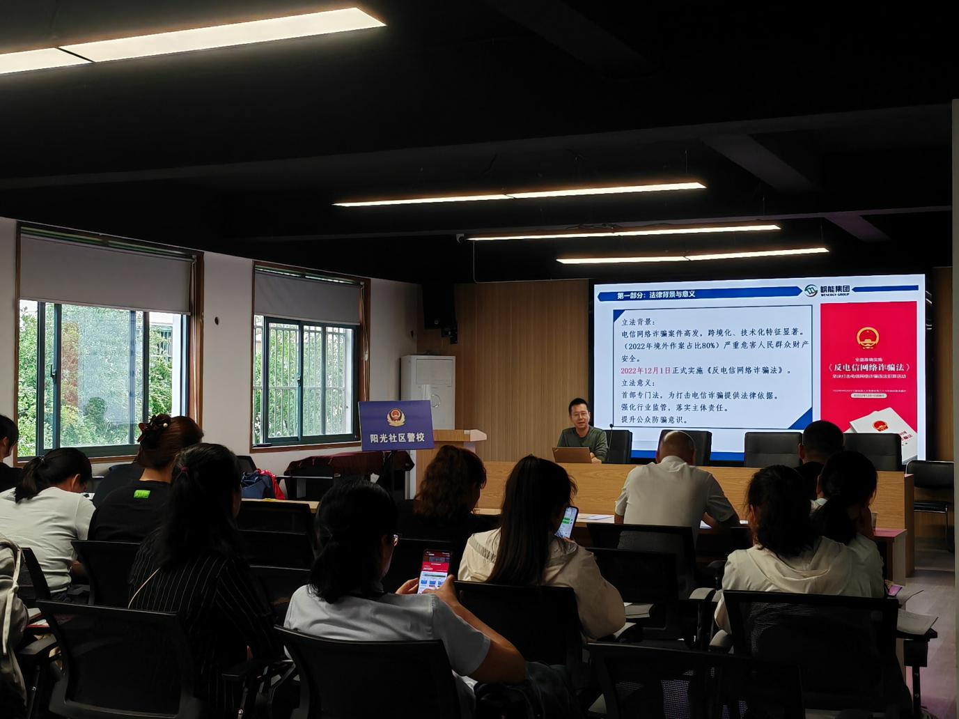 本次普法宣传活动系合肥市包河分局派出所阳光社区警校开班仪式的组成部分。该社区警校是安徽省第二所社区警校,是探索警社共治的“新平台”。皖能财务公司积极主动参加本次活动,围绕“反诈防骗”的普法主题,讲好该社区警校开班第一课。活动现场,公司相关工作人员通过主题演讲、发放宣传册等多种形式为阳光社区三十余名干部群众开展了一场生动的“防范电信诈骗”主题讲座,讲座介绍了电信诈骗常见手法、《中华人民共和国反电信网络诈骗法》重要内容、电信诈骗典型案例等,提醒社区群众时刻警惕各类诈骗手段,切实维护自身利益。