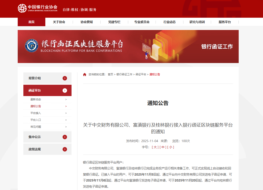 11月4日,中交财务公司成功接入中国银行业协会“银行函证区块链服务平台”,成为首家接入该平台的建筑类中央企业集团财务公司。在平台接入次日,公司即在中交一公院和中审众环会计师事务所的支持下,高效完成了首笔电子回函。
