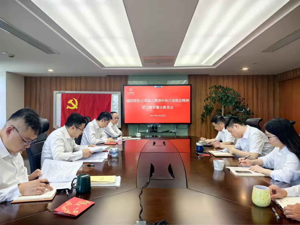 6月30日上午,城投财务公司党支部召开深入贯彻中央八项规定精神学习教育警示教育会。公司党支部书记、总经理江彪主持会议、作学习研讨总结并讲话。公司领导班子成员、全体党员、干部、入党积极分子及入党申请人等参加会议。