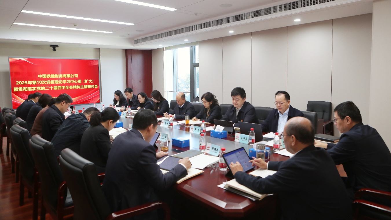 10月27日上午,铁建财务党委举行2025年第10次党委理论学习中心组(扩大)会议暨贯彻落实党的二十届四中全会精神主题研讨会,原原本本学习《习近平总书记关于党的建设的重要思想概论》《习近平谈治国理政》第五卷有关章节,全文传达学习中国共产党第二十届中央委员会第四次全体会议公报,再学习再领会习近平总书记全国国有企业党的建设工作会议重要讲话精神,深入学习《国务院办公厅关于做好金融“五篇大文章”的指导意见》,并进行主题研讨。会议由党委书记、董事长周仲华主持,公司领导班子成员参加学习。