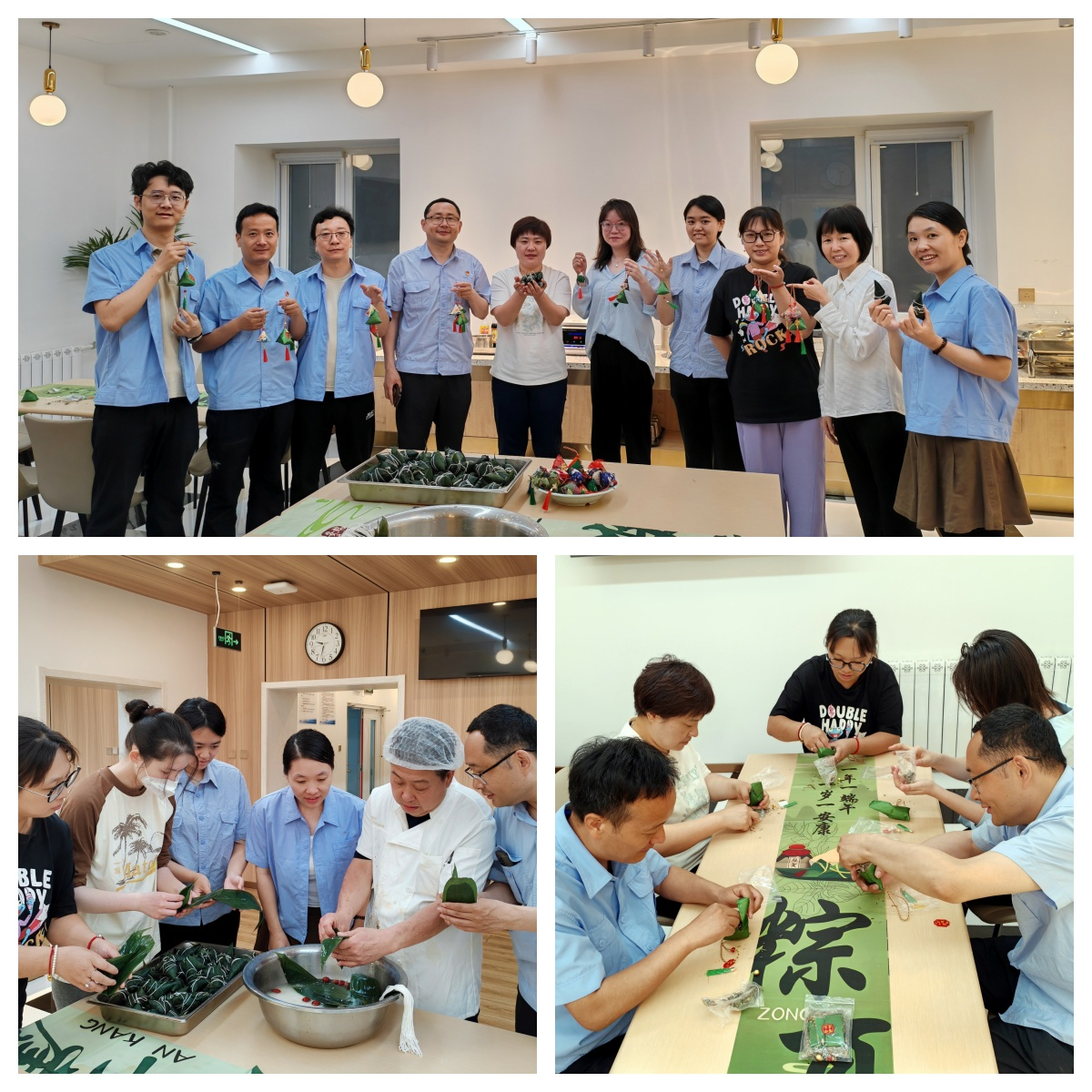 活动在公司食堂温馨开启,食堂大师傅早早泡好了糯米和粽叶,整齐地摆放在桌子上。大家围坐在长桌旁,在师傅的指导下认真地卷叶、填米、系绳,手法虽略显笨拙,却神情专注、兴致盎然。大家互相交流、互相学习,一个个形态各异的粽子在一双双巧手下逐渐成型,现场弥漫着淡淡的粽叶清香,洋溢着浓浓的节日氛围。
